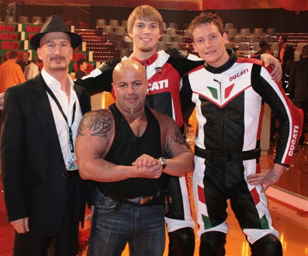Sherry Foruton aus Hamburg, erfolgreicher Kraftsportler, Management by Joe Alexander ENTERTAINMENT / powered by Body Attack und Ducati wird sich zwischen zwei DUCATIs 1098s stellen, um bei Vollgas und qualmenden Reifen die Zugkraft von ca. 600 - 800 Kg länger als 15 Sekunden lang zu halten, ohne dass er auseinandergerissen wird! Ist es möglich, die stärksten 2-Zylinder Maschinen der Welt zu halten? Wigald Boning und Barbara Eligmann präsentieren in MEGA CLEVER - Die NKL-Show spektakuläre Großexperimente und prominente Gäste. Einfach einschalten und wissen! Mehr Infos: SAT1. MEGA CLEVER Wir wünschen Ihm viel Glück und lot´s of POWER!!! Mit powerischen Grüßen