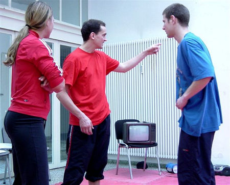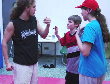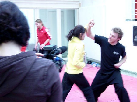Nachtrag: C-Diplom Seminar 2007 NACHTRAG! Seminar 2007! Das letzte Seminar des Jahres 2007 fand am 8. + 9. Dezember statt. Die Teilnehmer waren hoch motiviert, da die meisten schon einen Einführungsworkshop vorher belegt hatten. Auf diesen Grundlagen konnte also aufgebaut werden. Wie immer führte Joe das 2Tages-Stuntfighter-Seminar souverän durch alle Elemente des modernen Bühnen- und Filmkampfes durch. Nach zwei heißen Tagen im Kälte-Monat Dezember mussten alle dann ihre Abschlussprüfungschoreographie vorstellen. Das Prüfungskollegium war zwar streng, aber immer motivierend. Das Resultat war, dass einige die Prüfung knapp bestanden hatten und andere leider durch offensichtliche Flüchtigkeitsfehler nicht. Die gezeigten Choreographiearbeiten waren trotzdem spannend und mit außerordentlichem Ideenreichtum versehen. Die Prüfer: